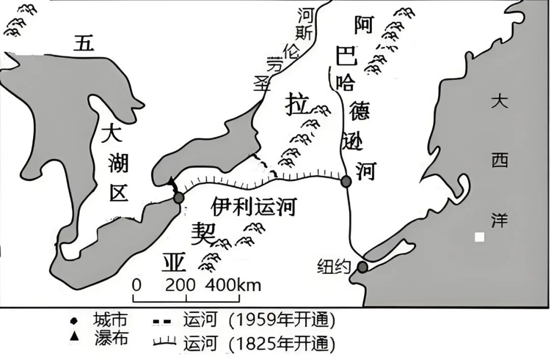這裏拿伊利運河為例。它曾經被看成改變美國國運的一個工程。它的修建,讓五大湖區的重工業得以興起。但是這個工程它有天然缺陷。美國靠原始的黑火藥,把阿巴拉契亞山脈硬生生地炸出口子修建了這條運河。