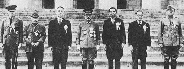 左三是汪精衞、左四是東條英機、右一是錢德拉·鮑斯