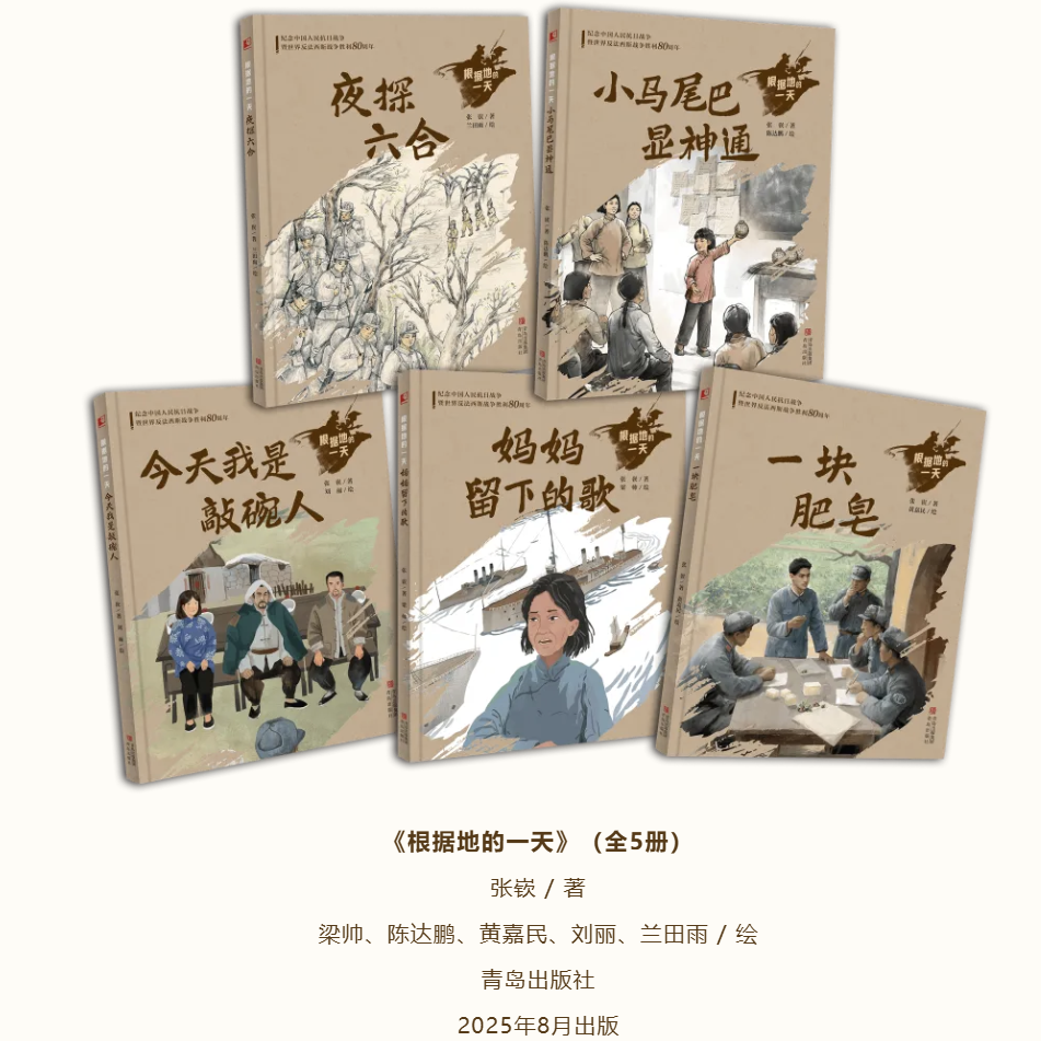 《根據地的一天》是一套獻禮中國人民抗日戰爭暨世界反法西斯戰爭勝利80週年的圖畫書,巧妙選取“一天”為視角,以真實人物為原型,通過造地雷、截物資、巧選舉、制肥皂、遞情報等精彩故事,展現山東抗日根據地、江南抗日根據地、晉察冀抗日根據地、陝甘寧邊區、東江抗日根據地艱苦、火熱的生活,及根據地人民信念堅定、蓬勃向上的精神風貌。本套書引領孩子從真實可感、富於細節的生活視角回望敵後抗日根據地的鬥爭、建設以及少年兒童的成長,同八十多年前的根據地少年做跨越時空的對話,從而更好地理解偉大的抗戰精神——那是不畏強暴、血戰到底的英雄氣概,更是百折不撓、堅忍不拔的必勝信念!