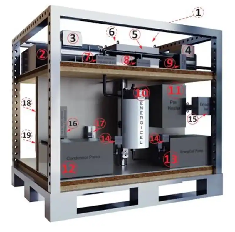 但ENG8聲稱他們破解了這一難題!他們的EnergiCell裝置通過加熱水分子在高温高壓下電離形成等離子體,送入反應室後與催化劑發生反應。在這一過程中,氫離子發生融合,釋放出光、熱、電子及其他帶電粒子——而這一切主要依賴質子和中子融合的新元素催化聚變。