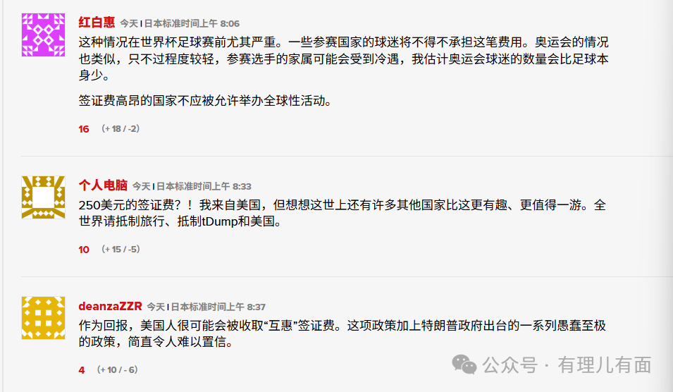 也有網友呼籲:250美元的簽證費?!想想這世上還有許多其他國家更值得一遊,全世界請抵制美國旅行、抵制特朗普和美國。