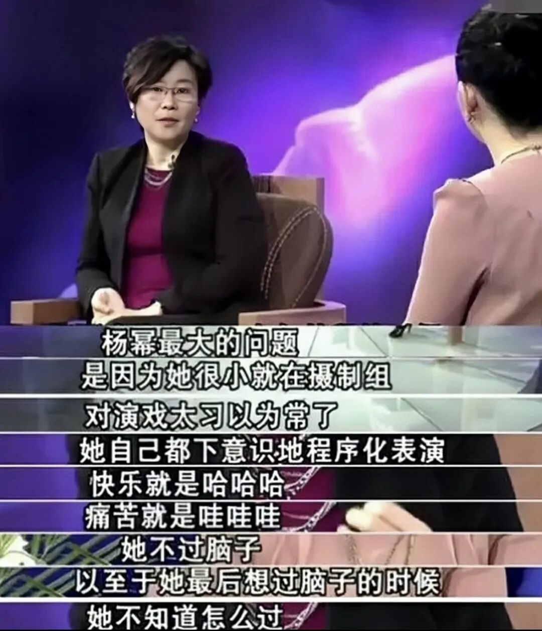 楊冪的恩師李少紅曾直言不諱地批評她:“快樂就是哈哈哈,痛苦就是哇哇哇,不過腦子。”