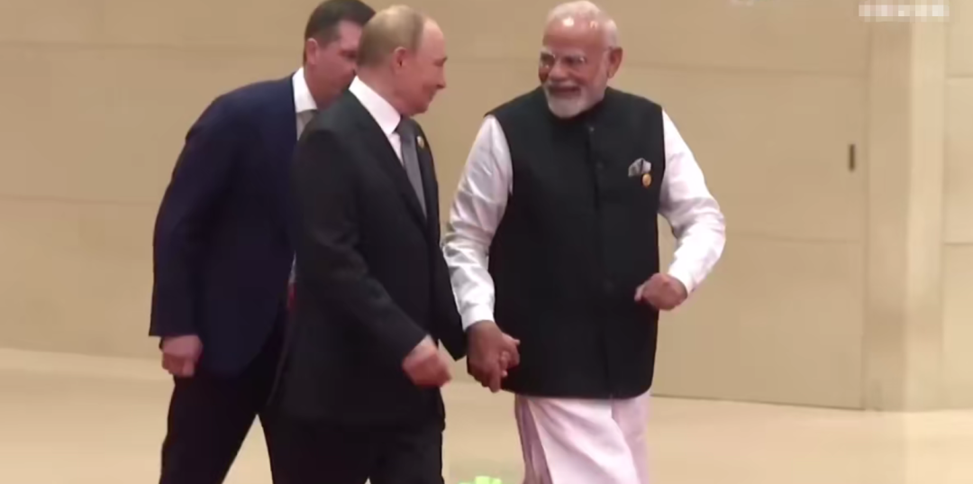 ▲普京和莫迪手拉手(圖源:鳳凰衞視)