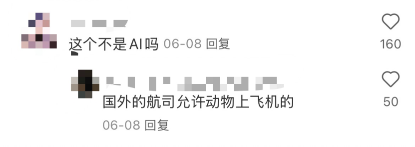 由於沒有明顯的光影、動作、肢體硬傷,袋鼠的表情又實在惹人憐愛,很多人壓根就來不及想“袋鼠能不能坐飛機”的問題,甚至注意不到女人揮舞的手露出了破綻,就衝到評論區瘋狂鍵入“好可愛呀”。