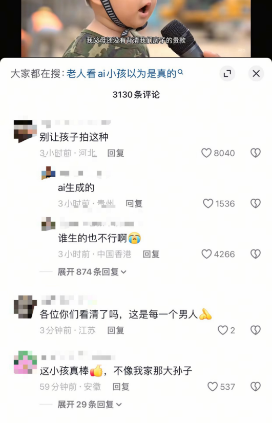 結果過年一回家,卻看到老人抱着手機憨笑,裏面傳來一陣陣“奶奶”“爺爺”的孩童甜音,**一瞅居然是平滑感十足的“六指靈童”在作祟。**發視頻的知道那是AI合成的,你也知道那是AI合成的,唯獨老人當真的看。