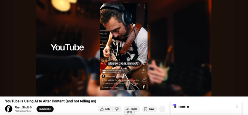 有創作者發現,自己的短視頻上傳到YouTube Shorts之後,質感變得很奇怪,貌似變得更清晰了,但是邊緣過度鋭利、畫面有詭異的平滑感、陰影格外明顯……換句話説,明明是真正的人類視頻,卻莫名其妙變得很“塑料”,就像AI視頻一樣。
