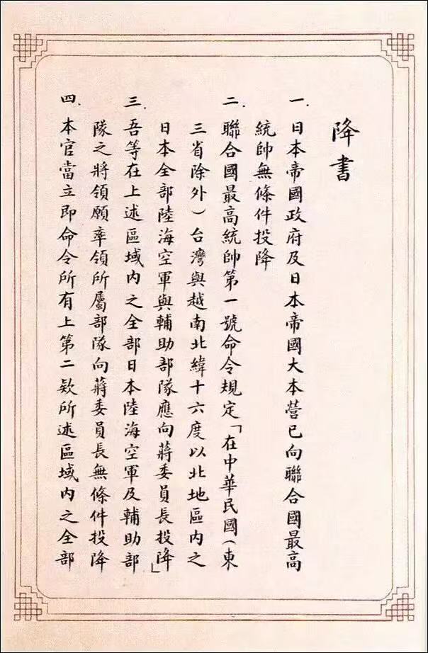 1945年9月9日,侵華日軍總司令岡村寧次在南京向時任國軍陸軍總司令何應欽遞交的投降書!