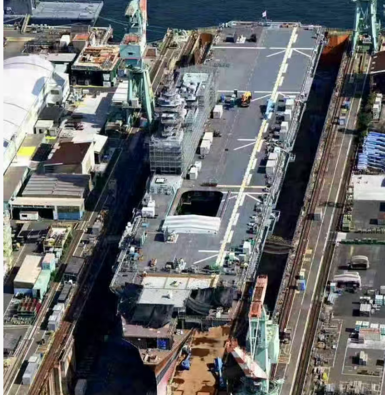 日本《讀賣新聞》報道稱出雲號航母正在進行重大改裝,以搭載F-35B隱形戰鬥機,預計改裝工作將耗時約三年時間。 此次改裝將擴大飛行甲板前部,以方便戰鬥機穩定起降。圖片中出雲號的船頭和油漆已被去除。