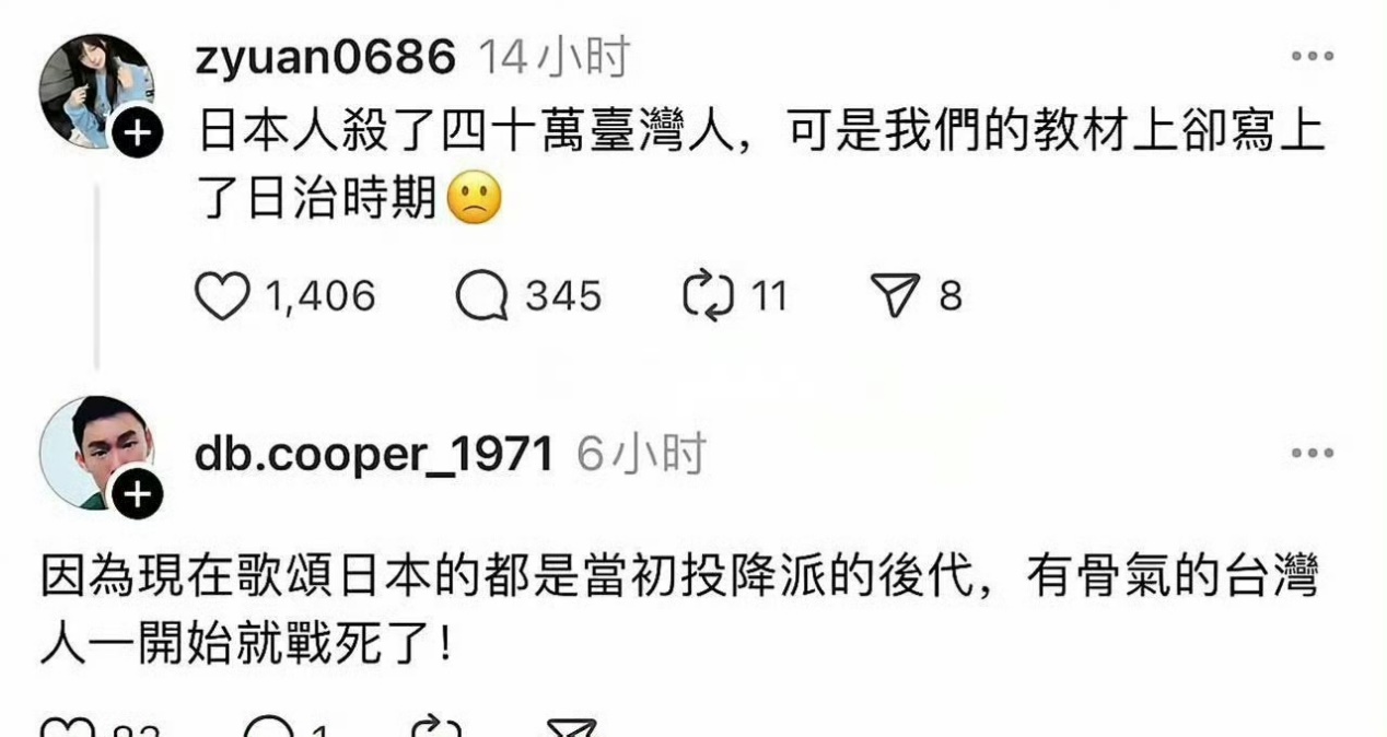 冰凍三尺,非一日之寒,目前漸漸地當話語權落入了綠營手裏,當台灣的教育課本都把日本侵略台灣美化成日本治理台灣時台灣欣欣向榮的時候,台灣目前的歷史問題就成了積重難返的局面。