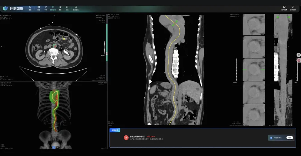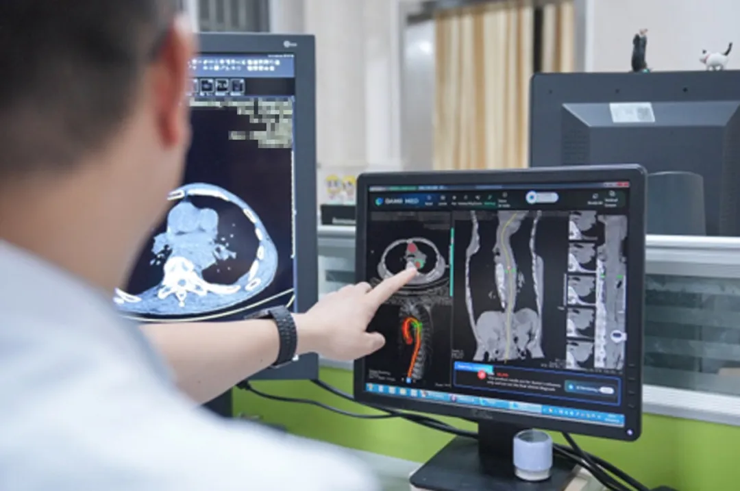 主動脈夾層的早期跡象,可能只是血管壁上幾毫米的密度變化、一點點不規則的腫脹。這種信號極其微弱,在CT的灰度圖像裏就像一滴水融入了大海,人眼幾乎無法察覺。而這,恰恰是AI的強項。