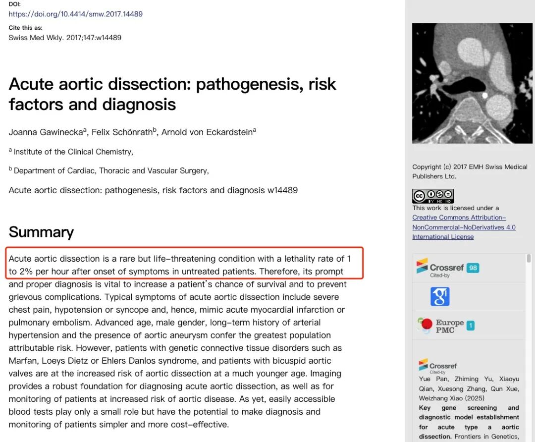 Swiss Med Wkly:Acute aortic dissection: pathogenesis, risk factors and diagnosis