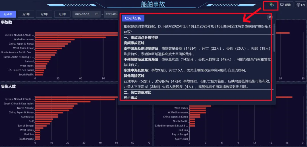 在應用頁面下,搜索“船舶事故”,點擊開啓智能分析之旅。