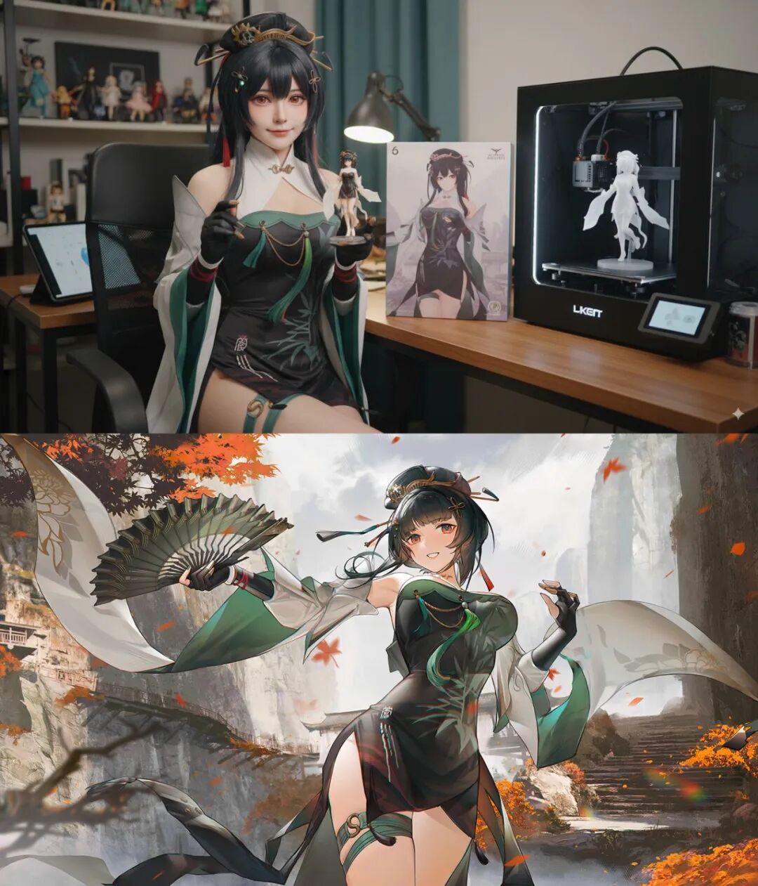 於是這幾天,全網多出了不少手辦大師,目前最火的玩法,就是把二次元角色手辦化,用户只需上傳喜歡的動漫、遊戲角色插圖,加上合適的“提示詞”,就能生成極具誘惑力的“實物”手辦效果圖,彷彿下一秒就能下單購買。