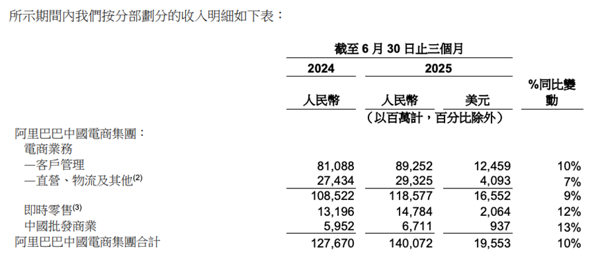 然而,投入力度如此之大的背景下,阿里的即時零售業務營收並未有顯著增長。財報顯示,2025年Q2,阿里即時零售業務營收147.84億元,同比增長12%,增額僅15.88億元。
