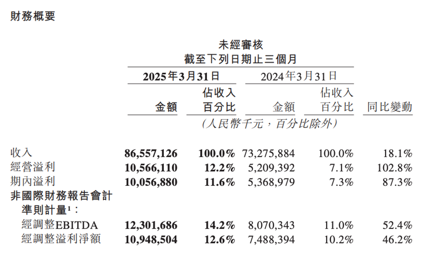 透過財報,也能感受到美團的氣定神閒。2025年Q1,美團營收為865.57億元,同比增長18.1%;經調整EBITA為123.02億元,同比增長52.4%。其中,美團核心本地商業業務營收643.25億元,同比增長17.75%;經營溢利134.91億元,同比增長39.09%。