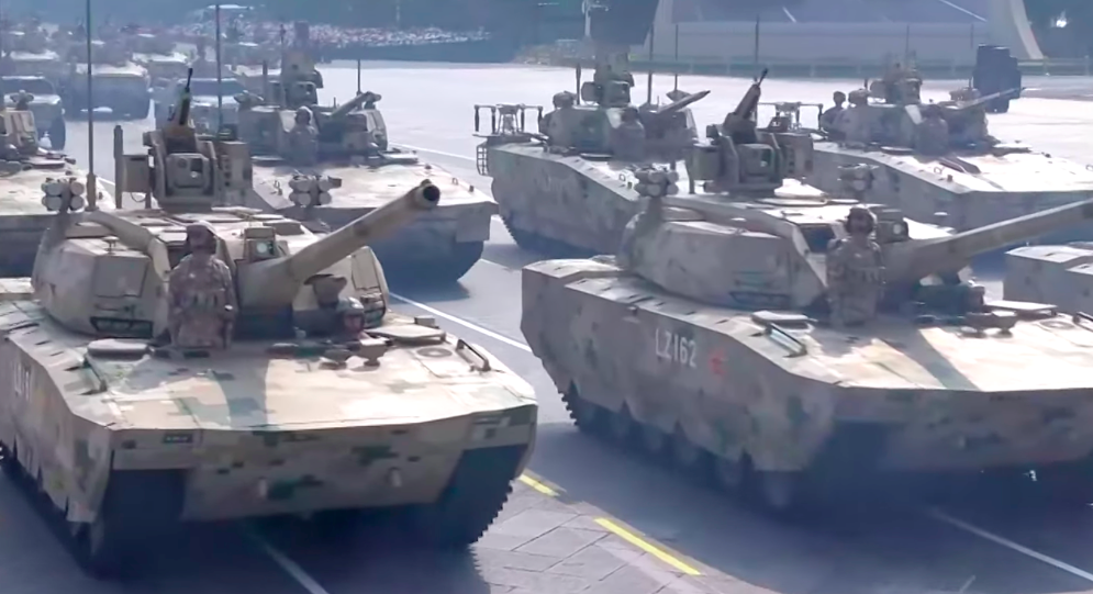 這次閲兵中陸戰裝備的最大亮點,無疑是人送綽號“雙離譜”的新型坦克。