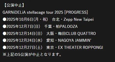 今天上午,toku在推特發表了公告,一方面告知粉絲GARNiDELiA進入無限期休眠,另一方面感謝粉絲的陪伴,對巡演取消造成的不便表示歉意。