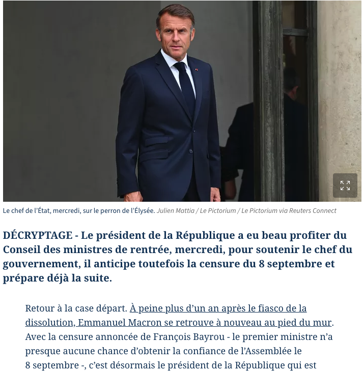 如此熱鬧的早上,法國自己也很鬧心。想必大家都知道了吧,9月了麼,怎麼能少了罷工呢?再加上咱們法國總理貝魯又又又要拜拜了,是的你沒看錯,又要換總理了。哎😑。。。要知道上次解散議會才過去1年多,這就又來一出了。。。