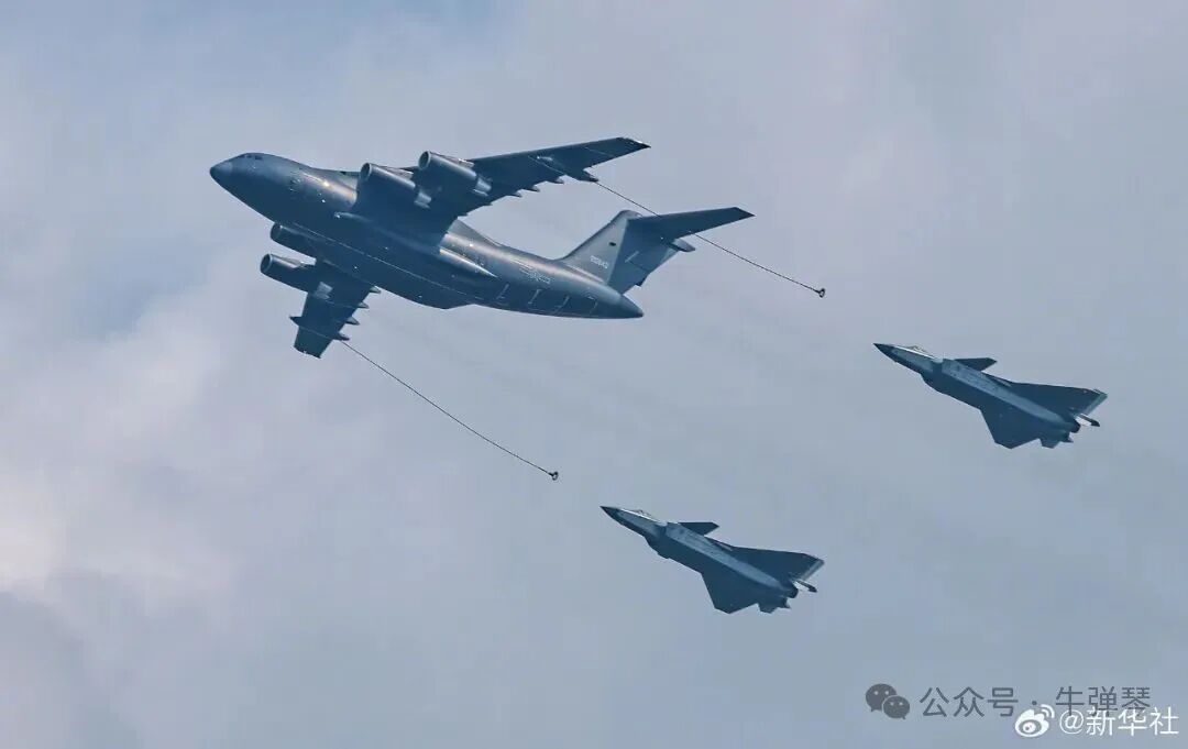 這是加受油機梯隊從空中飛過。新華社記者 肖藝九 攝