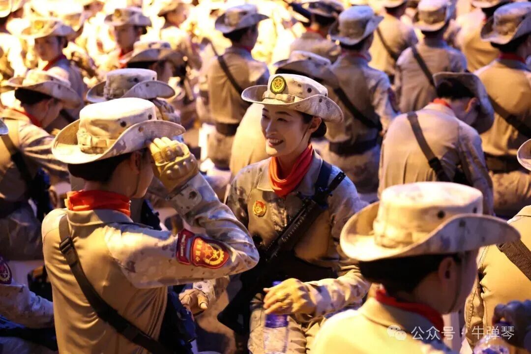 這是紀念大會開始前,受閲部隊在整理着裝。新華社記者 雒圓 攝