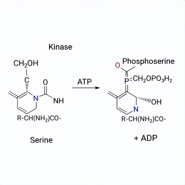 圖3 酪蛋白中的絲氨酸被磷酸化(加鈎子)的結構變化。