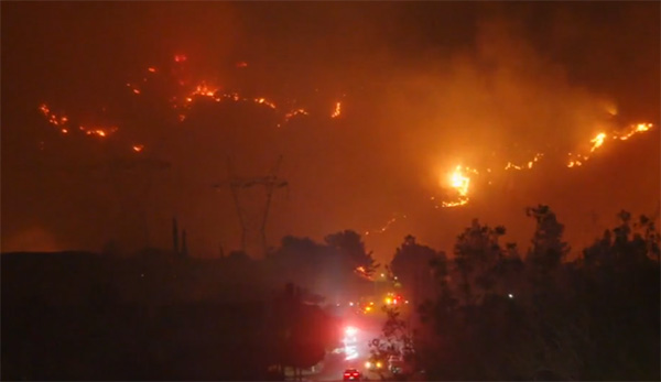 當地時間1月8日,洛杉磯聖費爾南多谷北部的赫斯特大火 視頻截圖