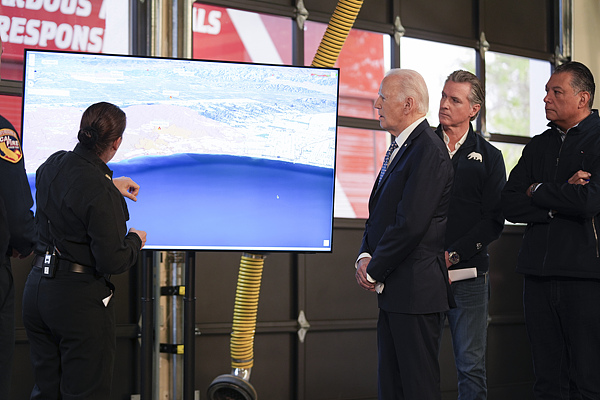 當地時間1月8日,拜登在加州聖莫妮卡聽取關於山火的彙報 視覺中國