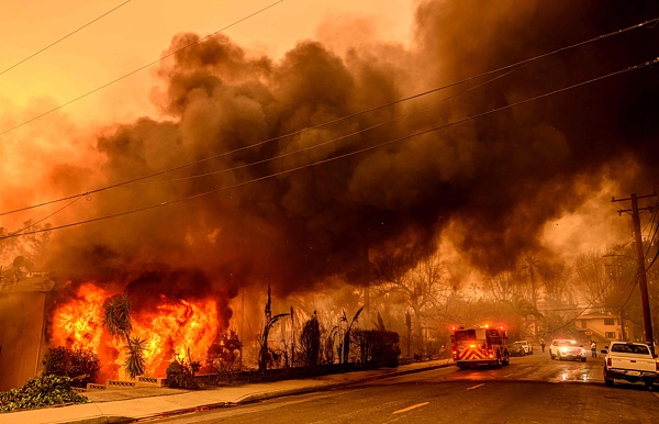 當地時間1月8日,美國加州洛杉磯縣太平洋帕利塞德大火 視覺中國