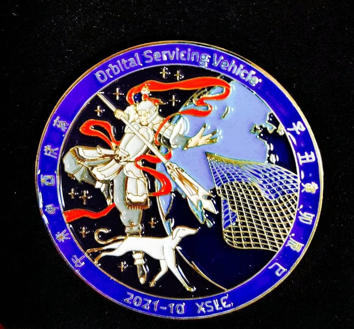 據説是實踐二十一號的任務徽章,設計非常有趣,二郎神帶着哮天犬撒出天網,捕獲某種目標 作者供圖