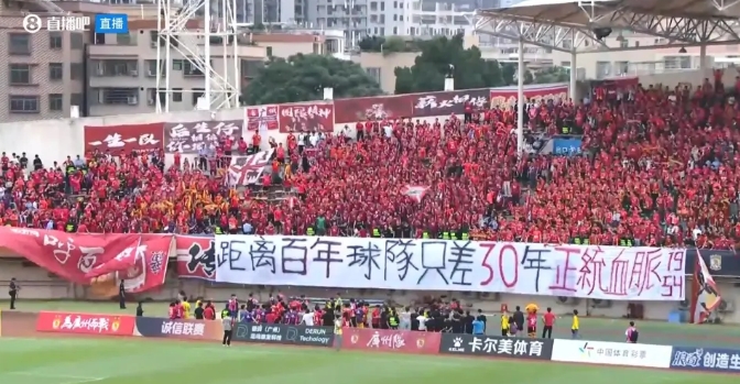2024賽季廣州主場收官戰,廣州球迷在看台打出的橫幅。 視頻截圖