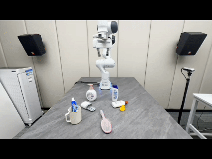 ****動作策略泛化。****模型應即時進行推理決策,不僅會移動跟隨目標,對於物體豎放、倒放等不同擺放方式,還可根據物體和夾爪的位姿自動調整策略,選擇最安全合理的抓取方式,處理複雜情況。