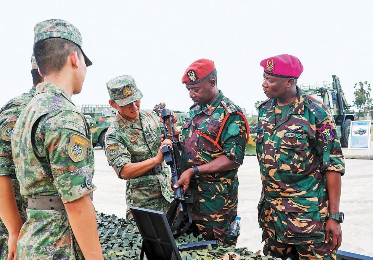 “和平團結-2024”聯合演習在坦桑尼亞馬坪加綜合訓練中心舉行,圖為坦方參演官兵體驗中方武器裝備。 圖源:央視新聞