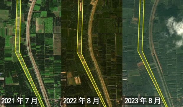黃線內被挖的土地連續3年均為耕種的狀態。圖片來自四維地球