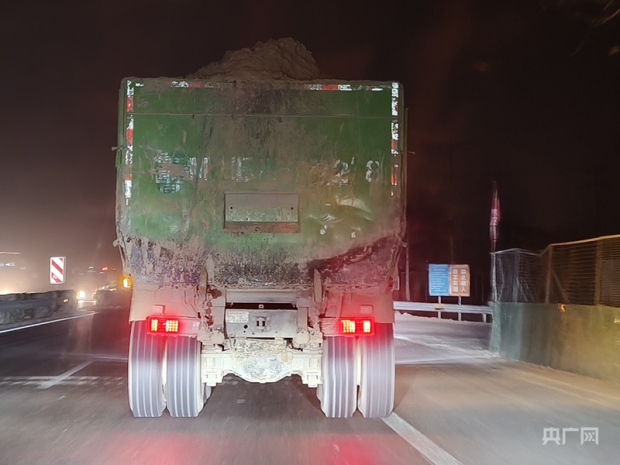 29日19時許,一輛綠色翻斗車駛入挖掘現場。伴隨着機器的轟鳴聲,挖掘機將地中的土壤一斗一斗地裝入翻斗車。之後,翻斗車駛進了距離挖掘地點約16公里外的某高速公路建設工地。記者在此工地蹲守觀察30分鐘,發現共有5輛從挖掘地點駛來的翻斗車進入工地。記者注意到,這些運輸土方的翻斗車部分未懸掛號牌,而翻鬥裏所載土壤明顯超出車廂設計高度。