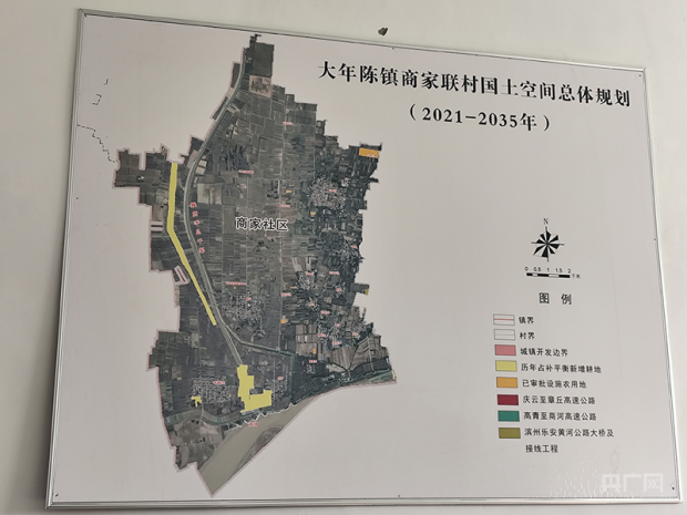 12月30日,記者以羣眾身份來到老唐家村所屬聯村,大年陳鎮商家聯村。在該聯村黨羣服務中心黨支部書記劉書文辦公室的牆面上,貼有一張《大年陳鎮商家聯村國土空間總體規劃圖(2021—2035年)》,圖中黃色區域為當地歷年佔補平衡新增耕地。記者比對發現,被挖的土地,與這些新增耕地高度吻合。面對大規模的挖土情況,商家聯村黨羣服務中心黨支部書記劉書文的答覆是,被挖的土地原本是“老河道”,後被劃為了耕地。至於誰在挖土,他説自己剛到聯村工作不到兩個月,不清楚此事,也不便介入調查。