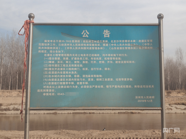 河道旁的《公告》顯示,灌區工程管理範圍內不得取土。白德彰攝 央廣網發