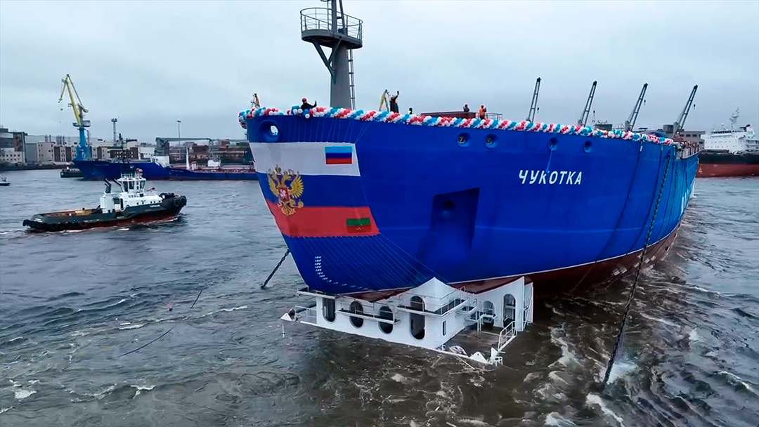 2024年11月6日,最大排水量3.3萬餘噸的俄羅斯22220型核動力破冰船五號船“楚科奇”號在波羅的海造船廠下水
