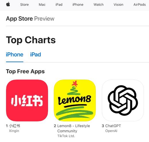 觀察者網從蘋果應用商店(App Store)發現,小紅書14日當天已在美國地區免費應用下載總榜登頂。而在昨天,該位置還屬於Lemon 8(Tiktok旗下的海外版類小紅書應用)。