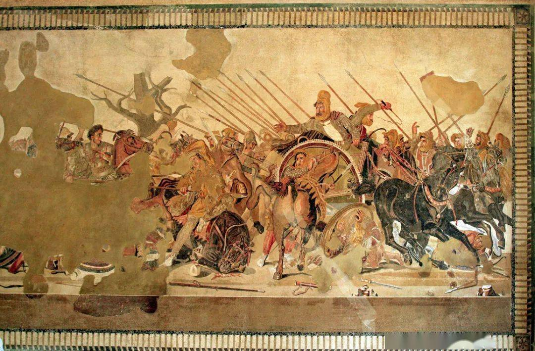 龐貝壁畫上亞歷山大大帝擊敗波斯大流士三世的決戰情景