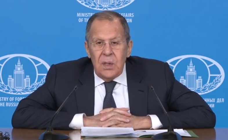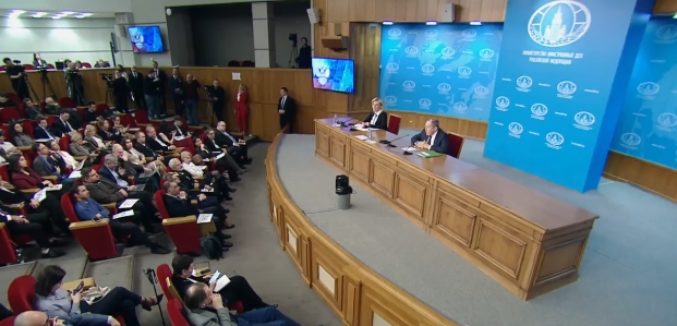 當地時間1月14日,俄羅斯外長拉夫羅夫出席大型新聞發佈會。 視頻截圖