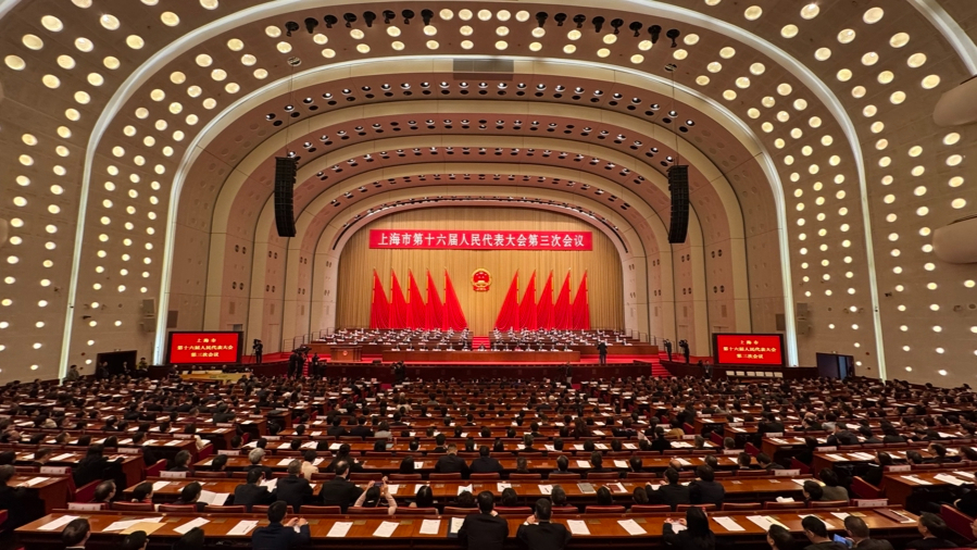 上海市第十六屆人大三次會議1月15日上午在世博中心開幕。上海市市長龔正作《政府工作報告》。