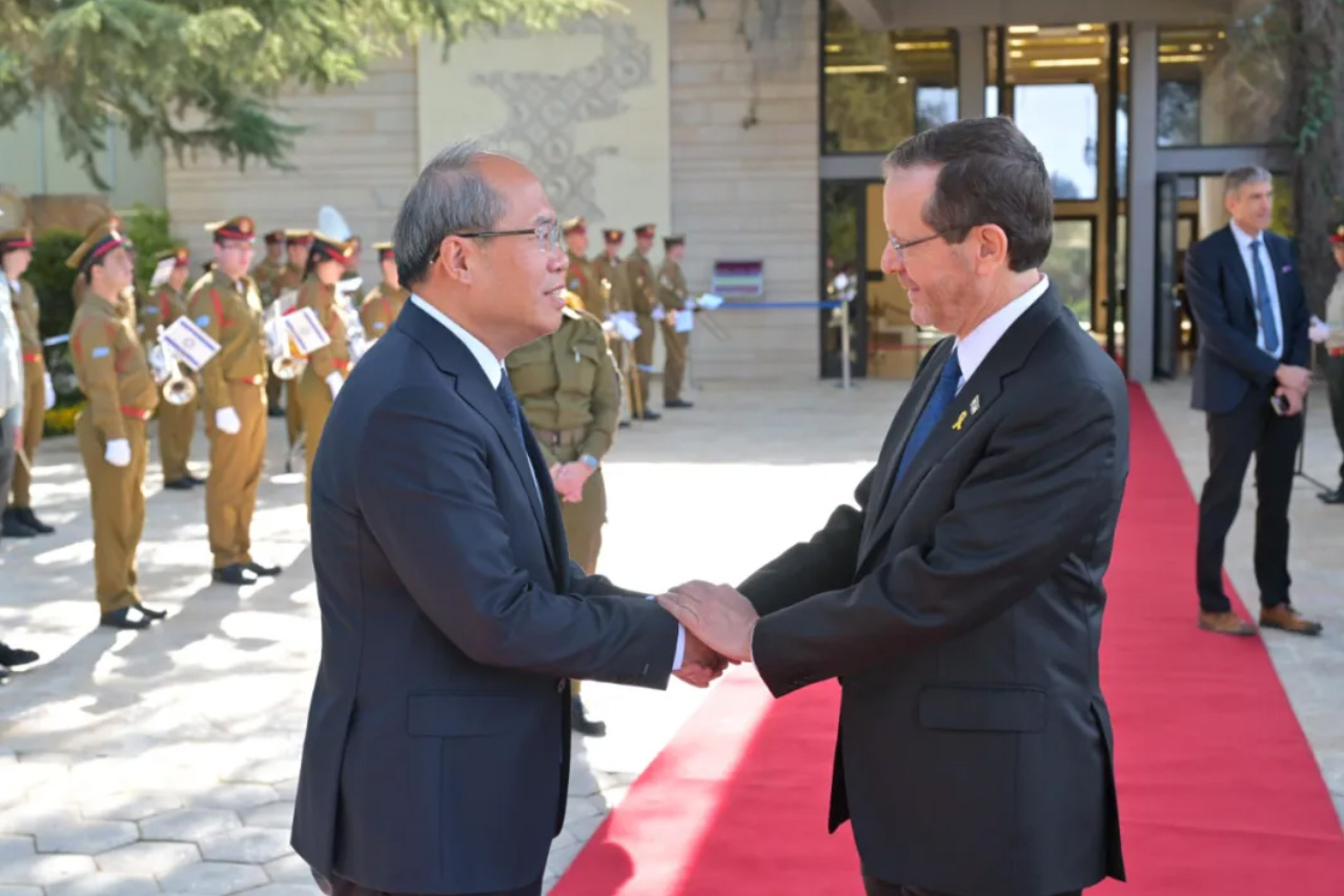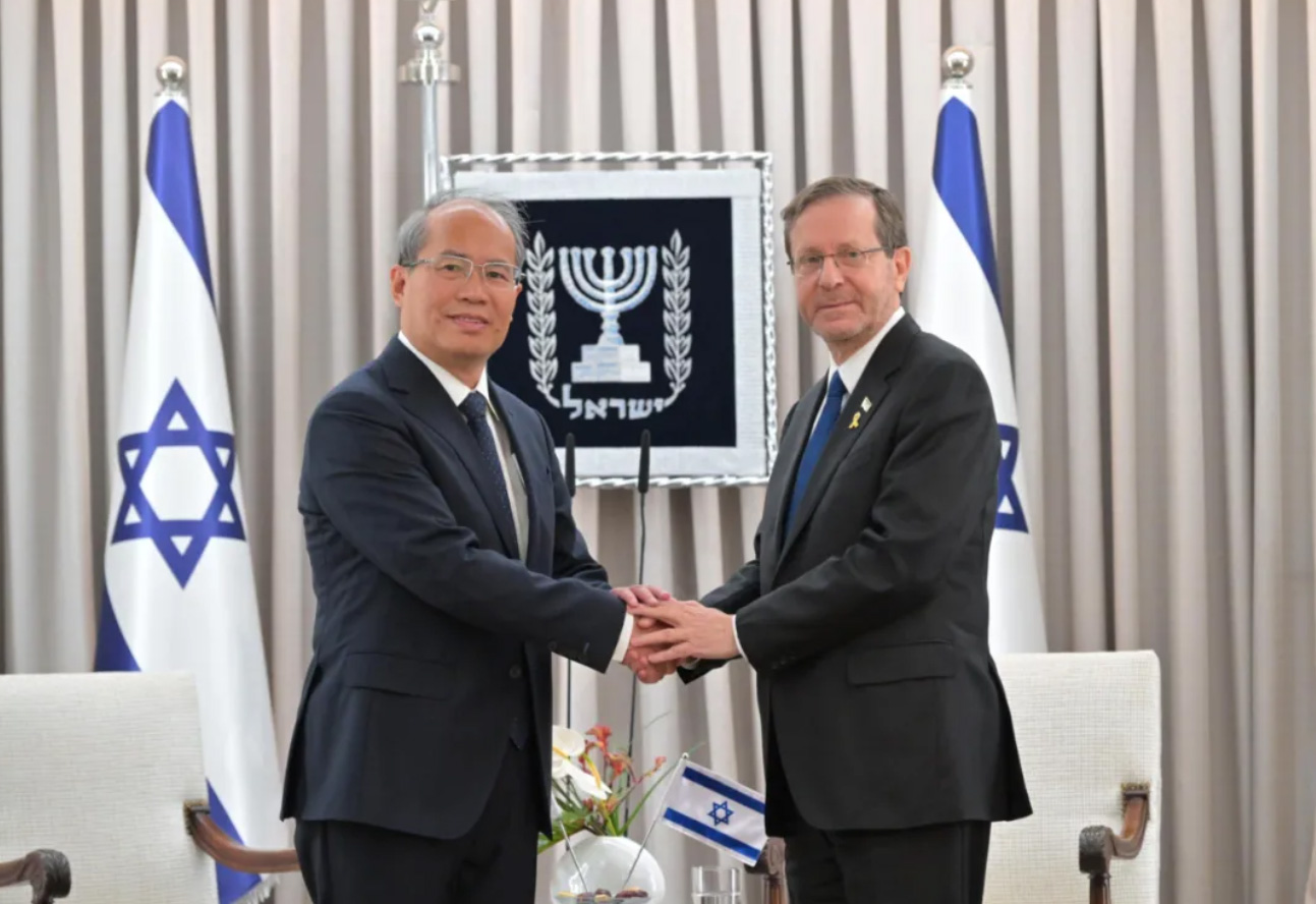 肖大使轉達了習近平主席對赫爾佐格總統的親切問候和良好祝願。肖表示,習近平主席同赫爾佐格總統保持密切溝通聯繫,為兩國關係健康穩定發展提供了戰略引領。中以建交33年來,兩國始終恪守相互尊重、合作共贏的原則,合作成果造福兩國人民。中以深厚友誼和真摯情感是在共同面對現實考驗和長久挑戰中形成的,彌足珍貴。面對挑戰,中以關係展示了足夠的韌勁和豐富的多樣性。今年是中國人民抗日戰爭勝利暨世界反法西斯戰爭勝利80週年,中以雙方應共同捍衞二戰勝利成果,維護國際公平正義,警惕並堅決反對任何美化納粹和法西斯主義的言行。中方願同以方一道落實好兩國領導人重要共識,推進中以創新全面夥伴關係持續深入發展,讓跨越千年的中猶友好情誼煥發出新的時代光芒。