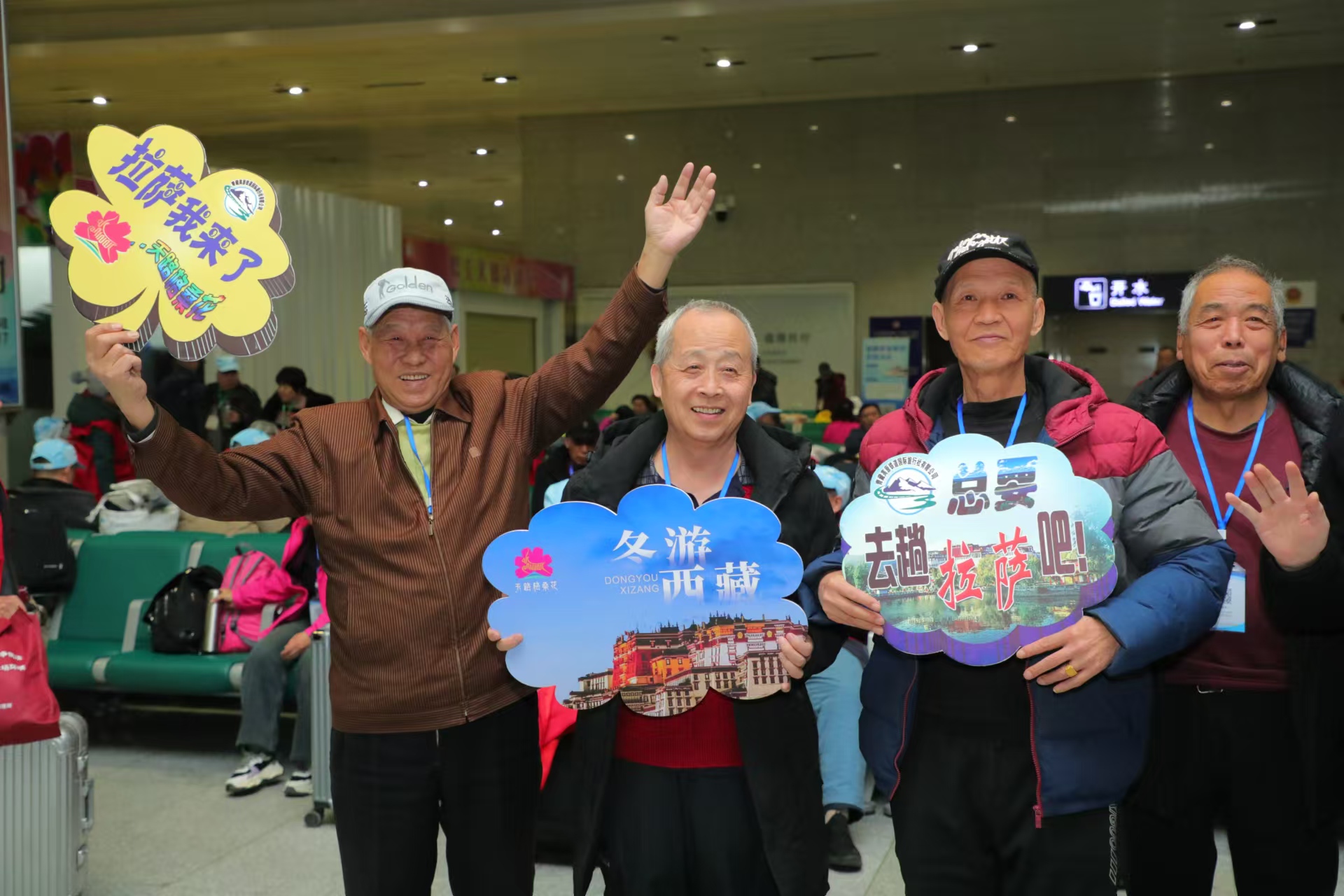 2024年12月,一羣老人乘坐“老年專列”赴拉薩旅遊。青藏高原鐵道國際旅行社
