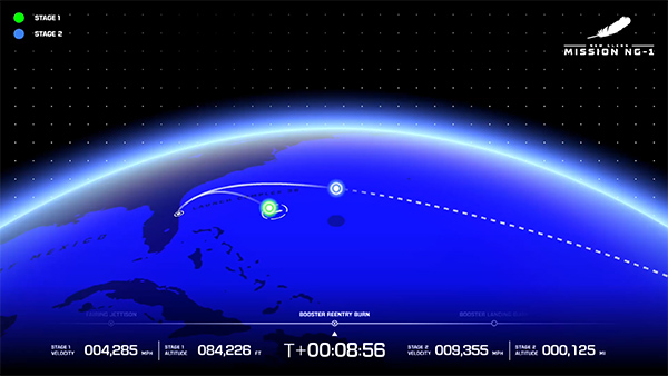 美國《紐約時報》報道稱,發射後,一級火箭7台BE-4液氧甲烷發動機工作正常,火箭順利通過最大氣動壓力點(Max-Q)。分離後,二級火箭BE-3U發動機順利點火,成功進入軌道。目前,二級火箭發動機已經關閉,下一步將啓動火箭搭載的試驗衞星。