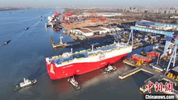 全球最大汽車滾裝船在江蘇揚州出塢,可裝載9200輛汽車