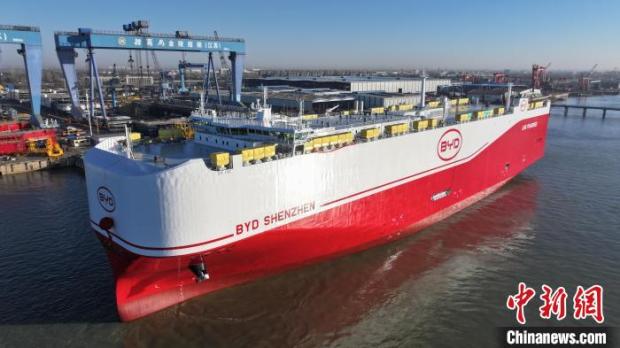 1月15日,全球最大汽車滾裝船比亞迪深圳(BYD SHENZHEN)在揚州順利出塢作業。該船的順利出塢為中國汽車品牌走出去提供了新的動力,助力中國新能源汽車企業快速響應國際市場需求變化,保障其在全球範圍內的產品供應和市場拓展活動順利進行。
