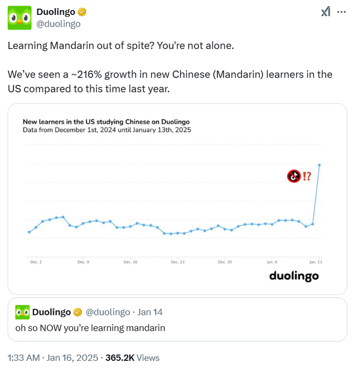 此前受美國政府威脅關閉TikTok的影響,2025年1月13日以來,大量定位在美國的用户湧入小紅書,並紛紛發帖自稱“TikTok難民”。許多美國用户在帖中都表示“願意尊重中國社區的語言和文化”,將在翻譯工具的輔助下儘可能使用中文和中國網友交流。