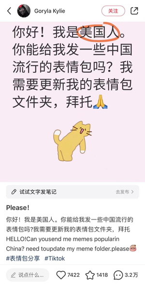 很多美國人在小紅書上説中國社區的梗和表情包都超有趣,這一點都不意外。我好多年前在美國的時候就是這樣了。不論是我跟美國同學講中國社區的梗,或者是在網上搬運中國社區的梗,都能夠給他們一點小小的震撼。“中國社區的梗更好”,很早之前就已經是歐美社區裏一些小圈子的梗了。