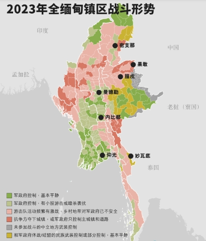 我以前也講過,緬甸這個國家類似於民國時期的軍閥混戰,緬甸政府只控制了中部和幾個大城市,其他地區都被各式軍閥佔領着,不僅不聽從緬甸政府的管理,還聯合起來進攻緬甸政府,天天打仗。