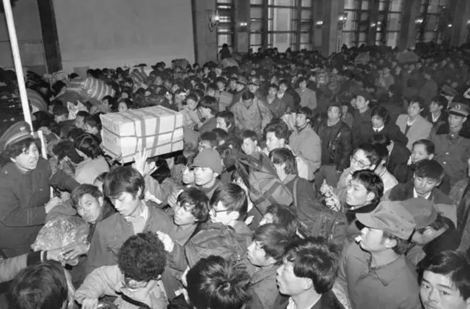 1993年1月,北京火車站開始進入春運高峯,旅客排隊進站 圖源新華社